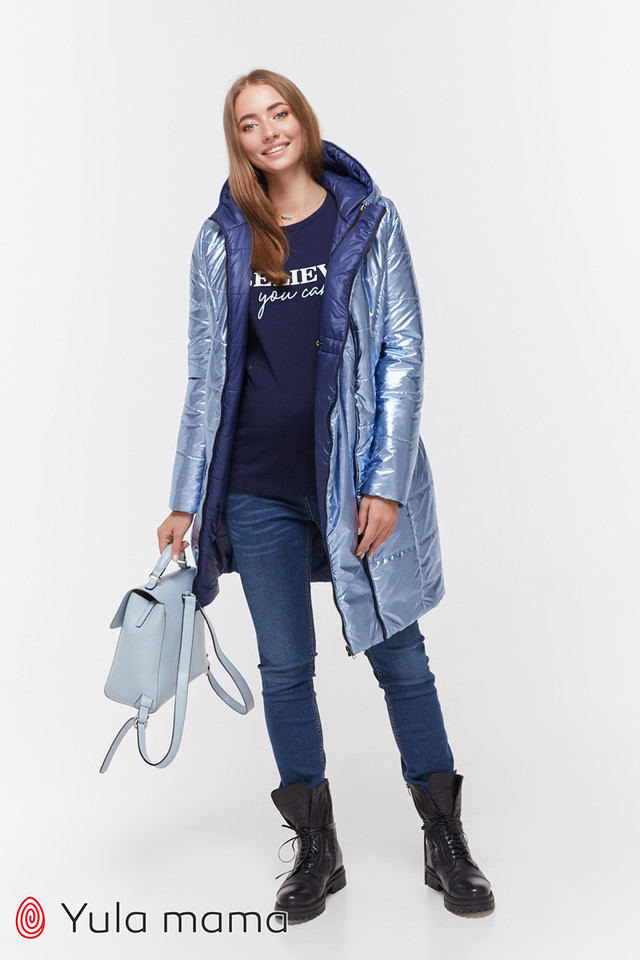 Молодіжна куртка для вагітних, виконана з плащової тканини лаке. У комплекті вставка для зростаючого животика, яка дає можливість носити курточку на будь-якому терміні. Можна рівноцінно носити на дві сторони - вони виконані дзеркально.