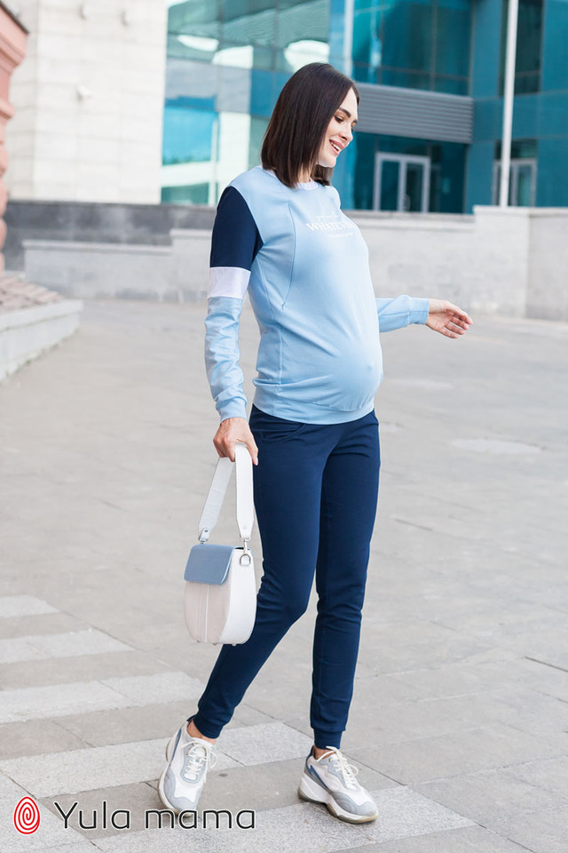 Зручний костюм для вагітних та годування з контрастними вставками та принтом.