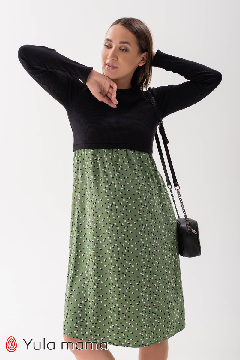 Сукня для вагітних та годування з трикотажним ліфом та спідницею із щільного штапелю.